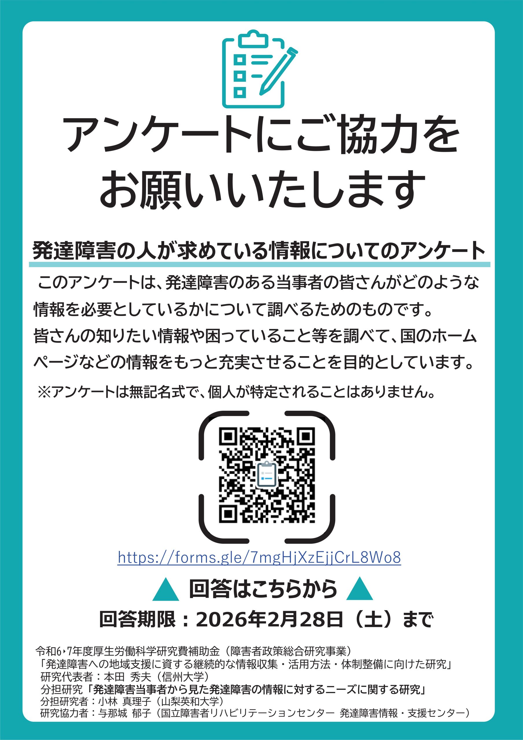 発達障害の人が求めている情報についてのアンケートへの協力のお願い